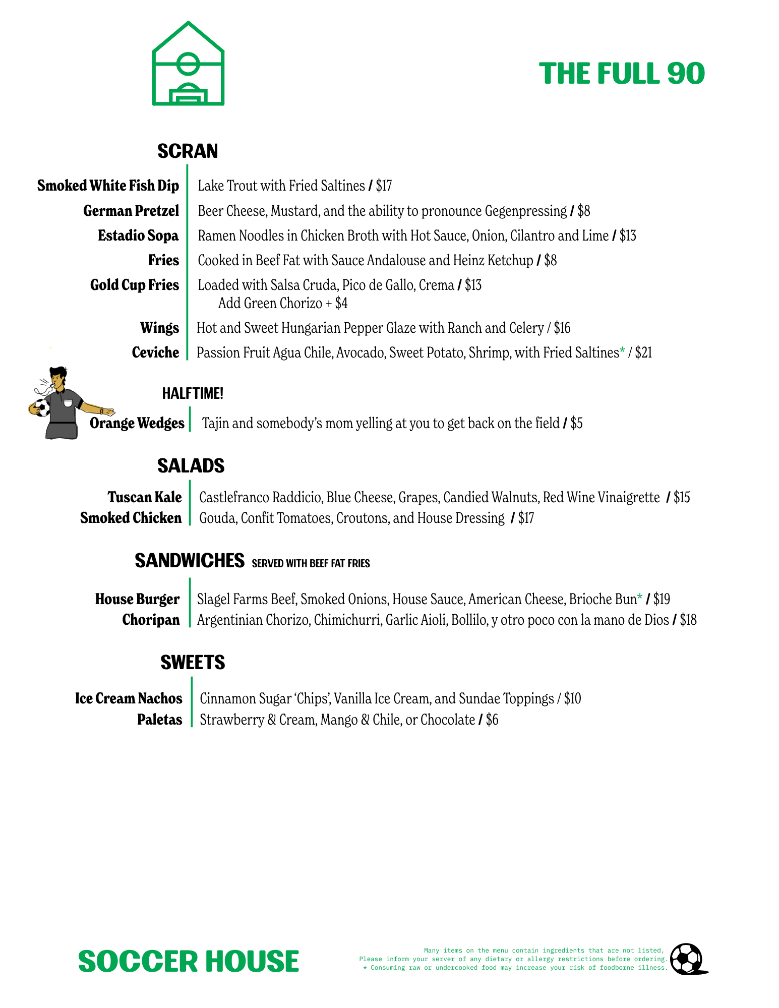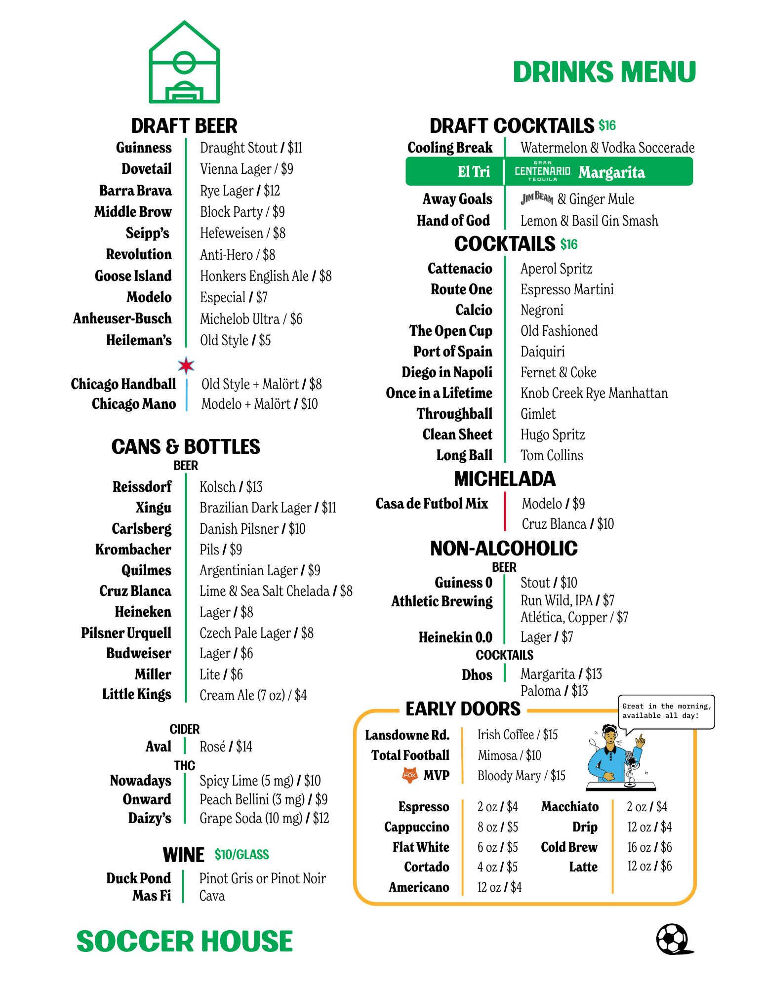 Menu DrinksAll Day, Everyday The Full 90Weekdays + Saturday/Sunday from 3pm Early DoorsSaturday/Sunday 3:00-Close